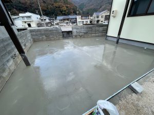 土間コン半分打設されております