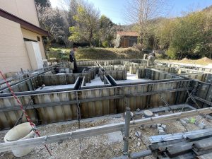 明日基礎立ち上げ部のコンクリ打設が行われます♫